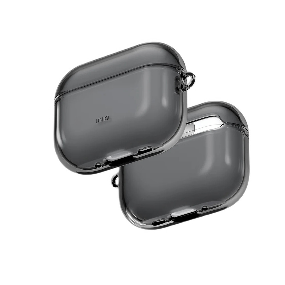 Чехол Uniq для Airpods Pro 3 Glase TPU case with carabin Glossy Smoke