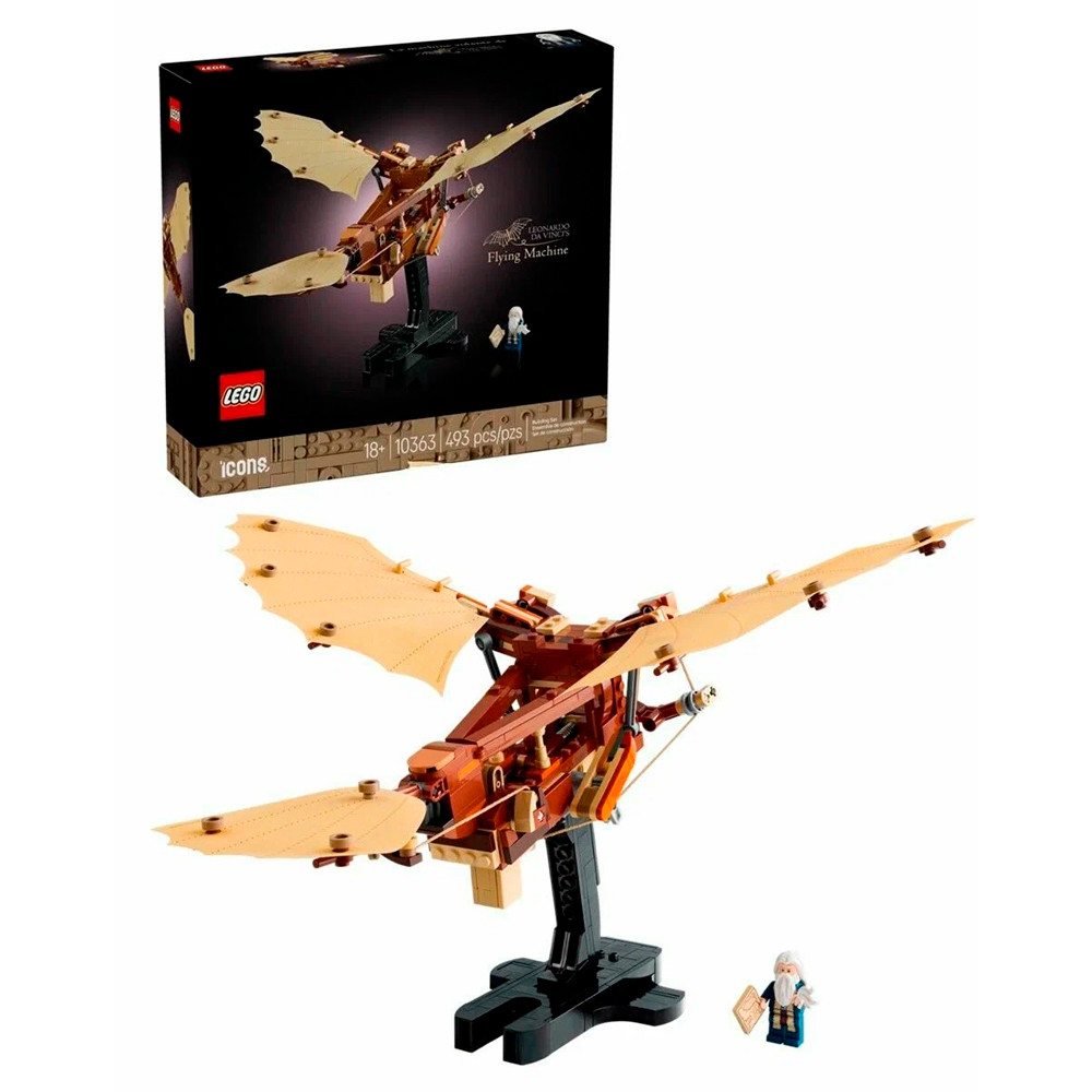 LEGO Icons 10363 — орнитоптер да Винчи из 493 деталей: двигающиеся крылья, механика тросов, минифигурка Леонардо, подставка. 25x35x29 см. Купить LEGO 10363 в Уфе — идеальный подарок для взрослых фанатов истории и авиации.