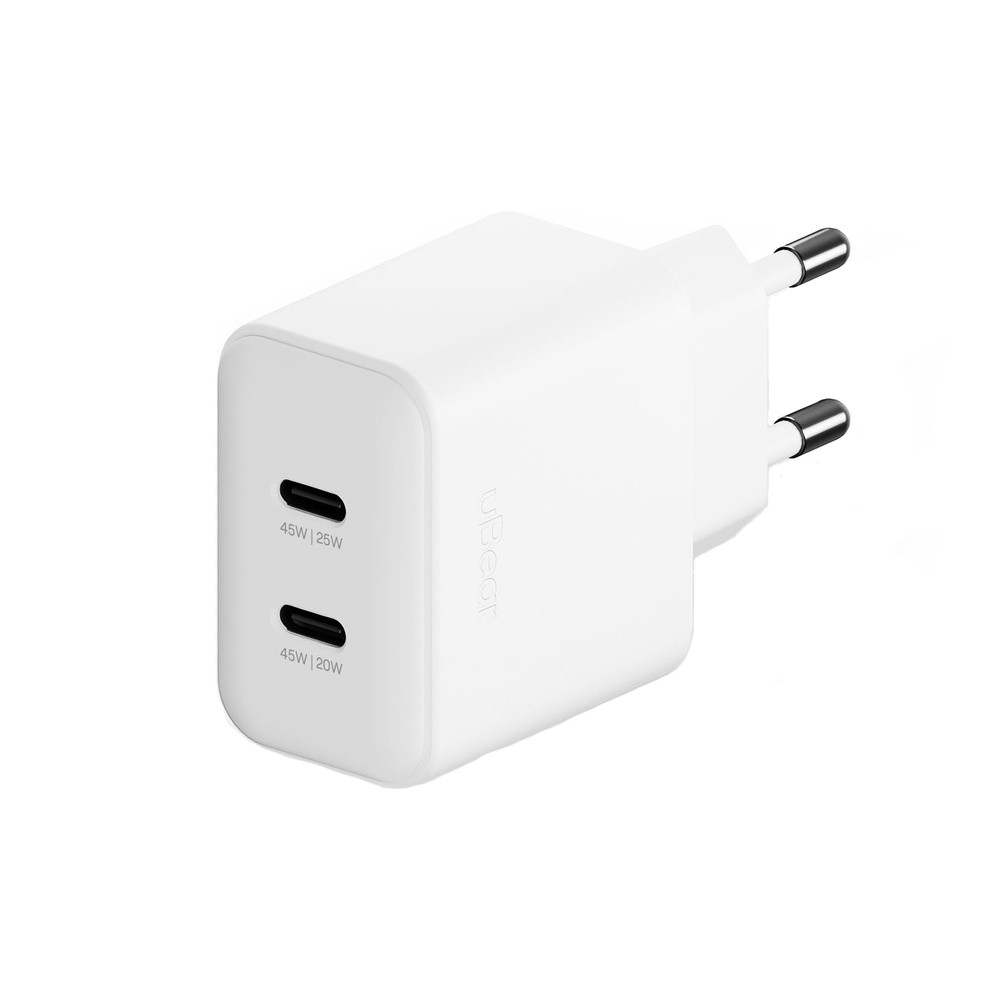 Сетевое зарядное устройство uBear Motion Wall Charger 45W GaN 2 USB-C белое